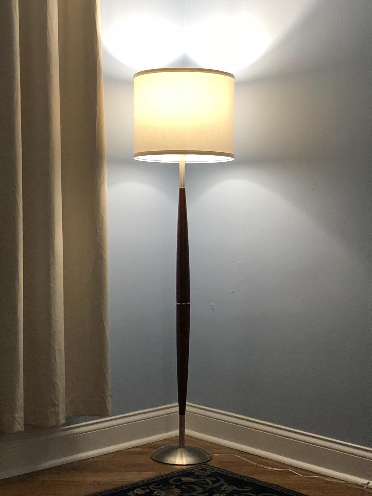 The upscale vibe of the Lucas LED Floor Lamp brings a touch of elegance to any living room, bedroom, office space, executive suite, library or study. Standing 61 inches tall with a beautiful wooden stem, gorgeous neutral linen lamp shade, and stainless steel base, it is sure to add a stylish look and design to any décor. Its sophisticated form and relaxing, shaded light make the Lucas floor lamp an exceptional choice for any home or office.